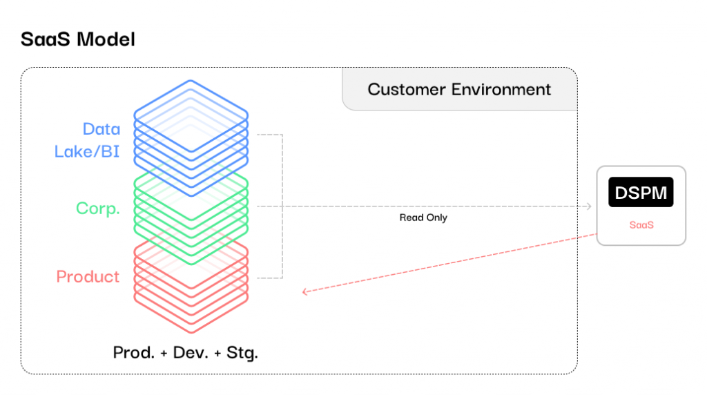 The convenience of a multi-tenant SaaS model is the biggest counterargument for conducting DSPM within a customer’s cloud environment. With a cloud-hosted service, deploying security capabilities is as simple as enabling an account and feeding data streams. No infrastructure provisioning or software deployments are required, as the vendor takes on the operational burdens of software updates, scalability, and runtime management.